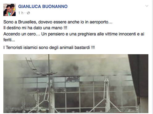 In diretta telefonica Buonanno, scosso e a tratti in lacrime, ha raccontato di aver cambiato ieri sera il biglietto aereo per fermarsi un po' più a lungo al Parlamento europeo. Solo al caso, dunque, Buonanno deve il fatto di aver la vita salva. L'europarlamentare ha raccontato di non aver sentito, questa mattina, le eplosioni e ha raccontato la situazione di una capitale deserta, scossa solo dai rumori delle sirene.