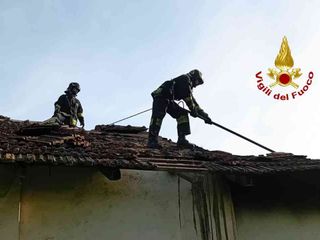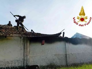 Le squadre dei Vigili del Fuoco hanno provveduto alla completa estinzione del fuoco che aveva avvolto una parte della tettoia della cascina che nel frattempo è crollata, e poi si sono occipate del raffreddamento delle travi rimanenti e allo smassamento di cio che era rimasto per evitare il reinnesco.