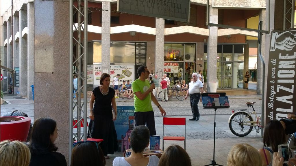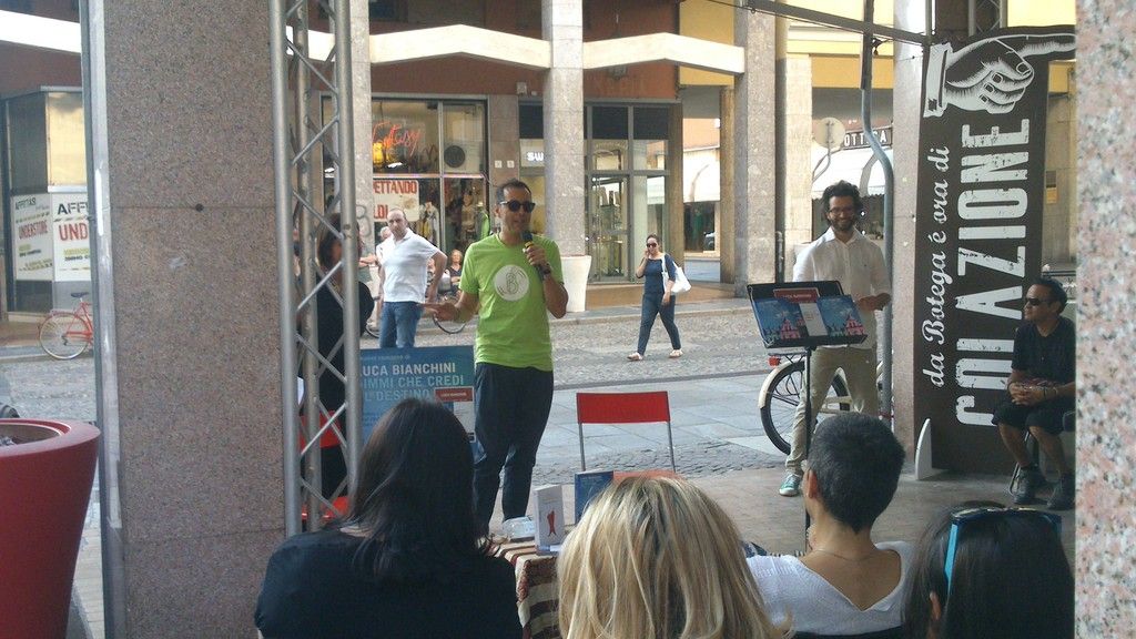 Luca Bianchini ieri ha presentato alla Mondadori di Vercelli il suo ultimo romanzo Dimmi che credi al destino.