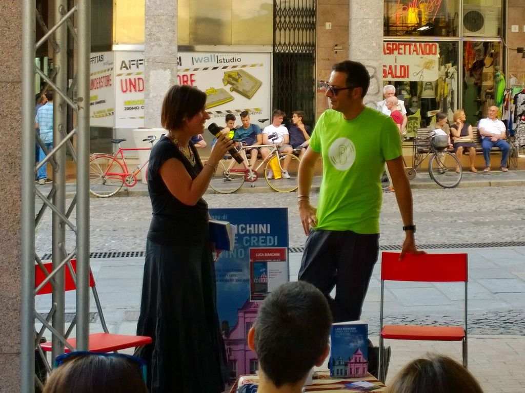 Lo scrittore torinese ha sfoggiato da subito le sue doti da intrattenitore. La sua simpatia è naturale, mai forzata e soprattutto mai offensiva o ridicola. Bianchini si è fatto coinvolgere da quello che gli capitava intorno e anche quando si è lasciato un po’ andare non sono tardate ad arrivare le scuse: <<non volevo essere blasfemo >> dice dopo aver ironizzato su un leggio posto di fianco a lui << dalla lettera si San Paolo Apostolo ai Tessalonicesi. Fratelli…>>.