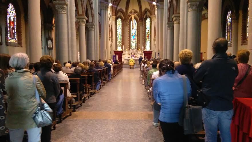 La chiesa del Sacro Cuore, al Belvedere, è gremita.