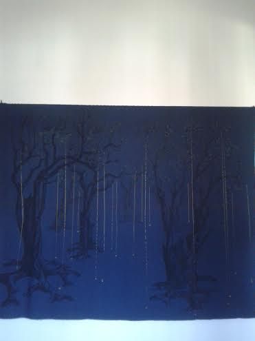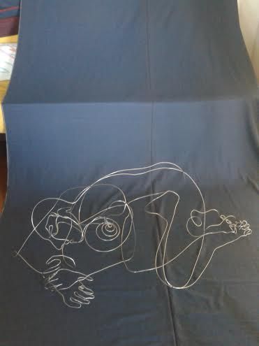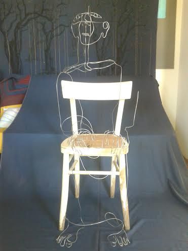 Laura Mazzeri ha disegnato a matita su tela di lenzuolo e nell'aria con filo di ferro: sono le "impronte" di sguardi o pensieri.