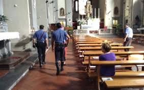 E' mezzogiorno, siamo a Saluggia.Una signora di 77 anni, che si trova nella chiesa di San Grato, viene avvicinata da una ragazza che, punto primo, immobilizza la donna, poi, punto secondo, le molla un ceffone e, terza puntata, le strappa il borsello con 50 euro e documenti vari, fotografie. Il gran finale è la fuga, a piedi.
