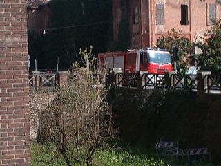 Vigili del fuoco nuovamente all'opera, nel primo pomeriggio di oggi, in zona Tribunale. Dopo il crollo di parte del muro perimetrale, avvenuto nella giornata di ieri, gli uomini del comando provinciale di Vercelli hanno compiuto un'ispezione per verificare le condizioni del Teatro dei Nobili. Due i mezzi utilizzati, uno dei quali munito di autoscala e cestello: i vigili del fuoco si sono dapprima posizionati all'angolo di via Livia Bruna Bianchi per verificare lo stato del tetto dello storico edificio, abbandonato da decenni, e invaso edera, rampicanti e alberi che sono cresciuti pure sulla sommità delle tegole.