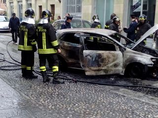 Momenti di agitazione questa mattina in via Verdi quando poco dopo mezzogiorno un’auto si è incendiata. L'auto, una Polo, ha preso fuoco all'altezza dell'incrocio con via Feliciano di Gattinara, sviluppando subito fiamme alte diversi metri e un denso fumo nero. Illeso, per fortuna, il conducente (un noto avvocato vercellese) che, visibilmente scosso, ha assistito alle operazioni dei Vigili del Fuoco, intervenuti insieme agli agenti della Polizia municipale e a una pattuglia dei carabinieri.