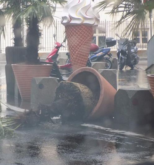 Sconvolti i dehors dei bar di viale Garibaldi: sedie, tendoni e coperture sono volati ovunque, come pure sono state rovesciate alcune delle grandi e pesanti fioriere che ornano la zona.