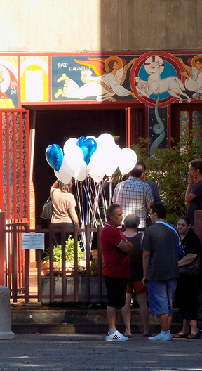 Palloncini bianchi e blu liberati verso il cielo per salutare Daniel Napolitano, giovane magazziniere di 24 anni assassinato, la scorsa settimana, dall'amico e vicino di casa Alessandro Rizzi.