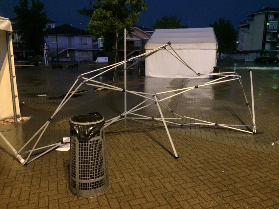 A Santhià il nubifragio ha danneggiato in particolare le strutture della festa della Fossalassa, rovinando la serata e abbattendo parte delle coperture. I volontari che organizzano la festa hanno anche postato sul Facebook un video che testimonia la violenza delle precipitazioni.