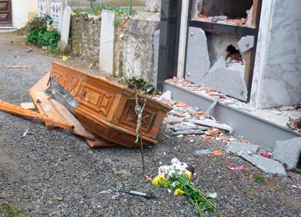 Tre le sepolture prese pesantemente di mira, con gravi danni, e bare riportate alla luce e devastate. Altre quattro tombe sono invece subìto il danneggiamento delle lapidi.