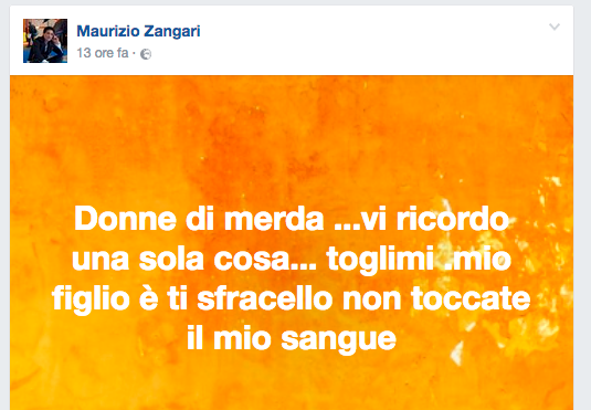 Una rabbia che l'uomo aveva anche raccontato sul suo profilo di Facebook: in post che parlano dei figli ("l’unica felicità rimasta", scrive) e sfociano in oscure espressioni di minaccia. "Al momento buono piangerai..." aveva scritto qualche giorno fa. E poi ancora: "Donne di merda... vi ricordo una cosa sola: toglimi mio figlio e ti sfracello, non toccate il mio sangue" postato solo qualche ora fa, lasciando intendere che quel sentimento che lo ossessionava era davvero sul punto di esplodere.