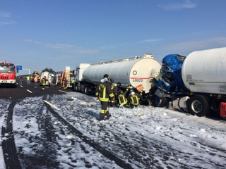 I Vigili del Fuoco di Novara e Milano sono intervenuti in autostrada A4, direzione Torino all'altezza del casello Novara est, per un incidente stradale che ha coinvolto due autoarticolati, un furgone e una macchina.