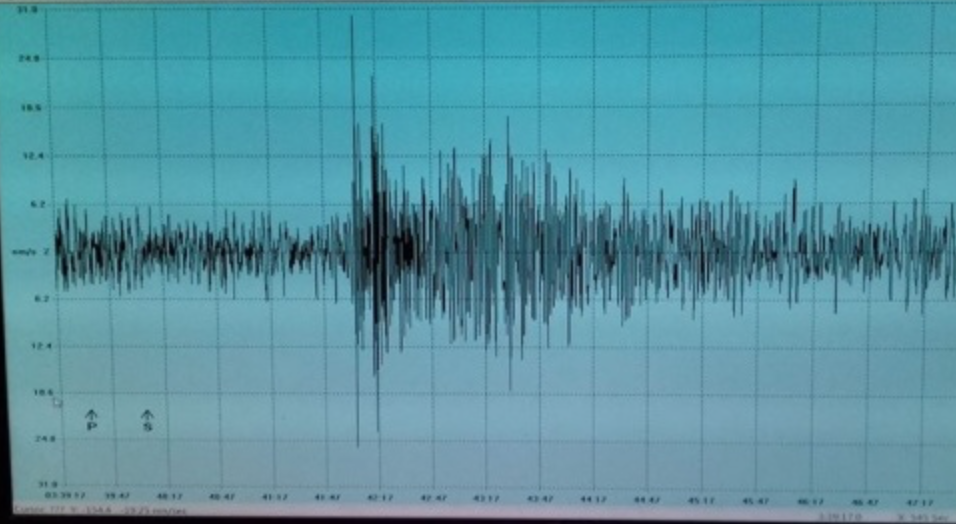 Ecco in foto il tracciato con il movimento anomalo della crosta terreste, pubblicato anche su Facebook dal segretario Giuseppe De Antoni.