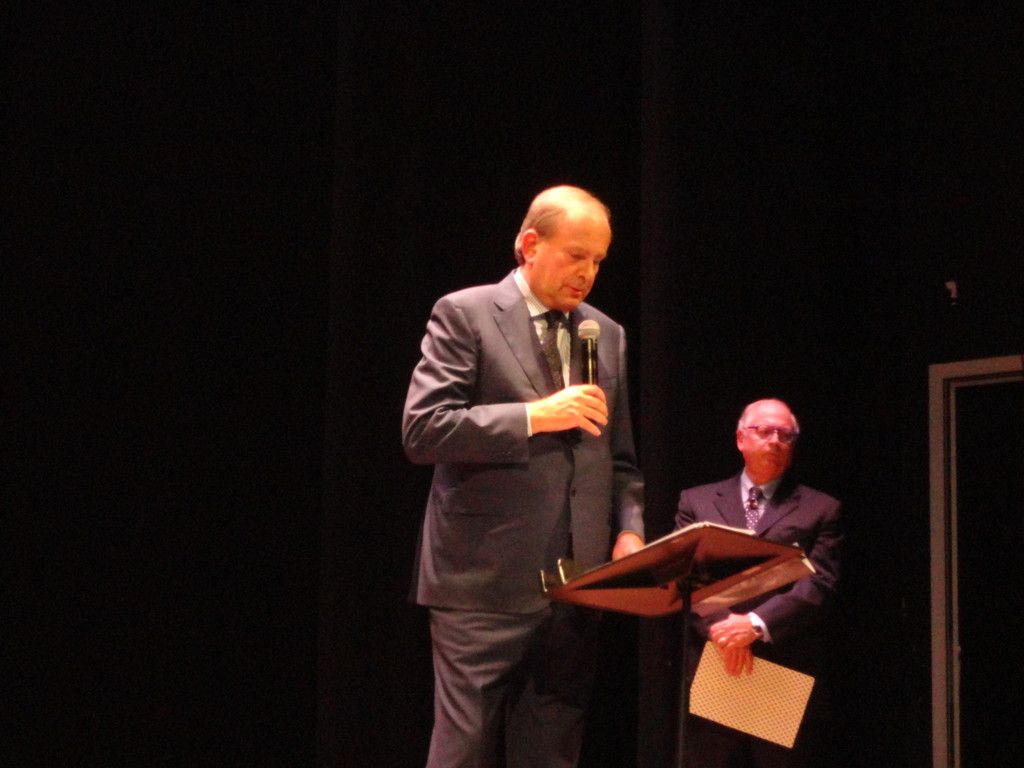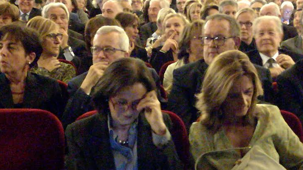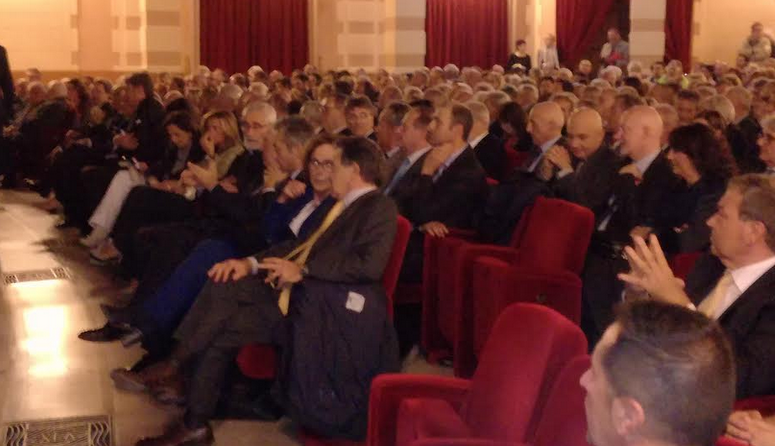 E il teatro era pieno zeppo, tanto che prima dell'inizio si sono dovuti aprire i palchi. C'erano le autorità, ma c'era tanta gente comune, anche. Il presentatore era il giornalista e conduttote tv Gigi Moncalvo.