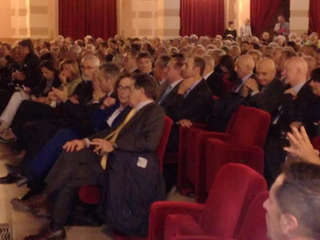 E il teatro era pieno zeppo, tanto che prima dell'inizio si sono dovuti aprire i palchi. C'erano le autorità, ma c'era tanta gente comune, anche. Il presentatore era il giornalista e conduttote tv Gigi Moncalvo.