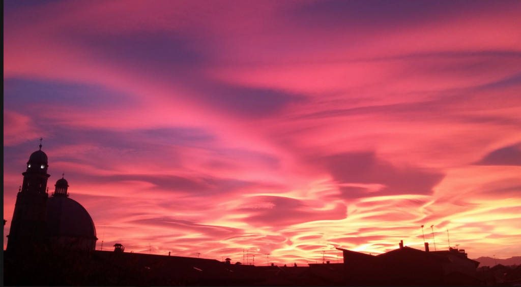 La buona notizia è che, per una volta, l'inquinamento non c'entra. A regalare un tramonto indimenticabile è stato il raro fenomeno delle 'nubi lenticolari', così chiamate per la loro forma a 'lente'. Il fenomeno, che si realizza solo in particolari condizioni meteorologiche, si origina in presenza delle 'onde orografiche', ovvero quando un flusso d'aria viene modellato dall'orografia dei rilievi montuosi e genera le tipiche 'ondulazioni' che si sono potute ammirare sui cieli di mezza Italia.
