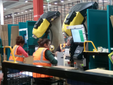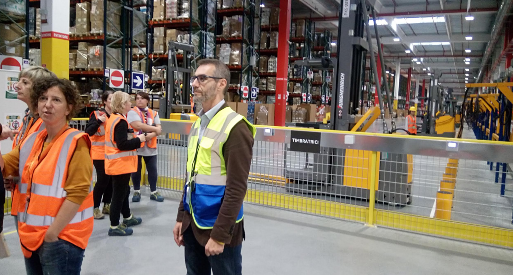 E' tutto immenso nel capannone - che un anno fa non c'era - e che è stato realizzato in nove mesi di lavoro e con un investimento di 65 milioni di euro: immensi i parcheggi, dove le auto dei dipendenti sono tutte ordinatamente disposte nella medesima direzione e dove gli stalli più comodi sono riservati al car sharing, alle bici, ai motorini e al "dipendente del mese"; gli spogliatoi con gli armadietti a combinazione numerica dove i dipendenti devono lasciare i loro effetti personali (cellulare in primis); la mensa con l'angolo ping pong e calcetto, i computer e la famosa scritta che riassume la filosofia aziendale: "Work hard, have fun, make history", ma dove ci sono anche i frigo e i forni a microonde per chi vuole portarsi il pranzo da casa; immensa è poi l'area di lavoro vera e propria, con gli oltre 400 scaffali per stoccare la merce, le decine di multetti che vanno e vengono, il settore per l'accoglienza e quello per la spedizione delle merci.