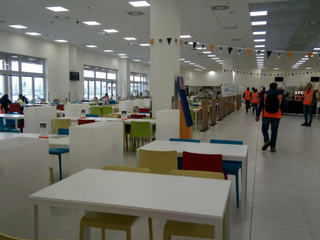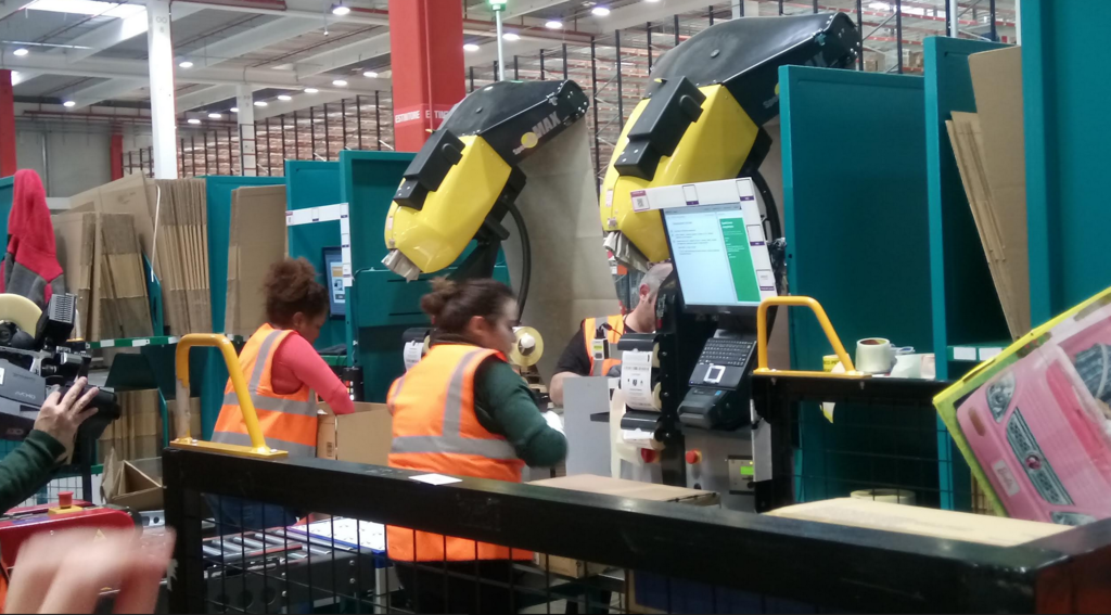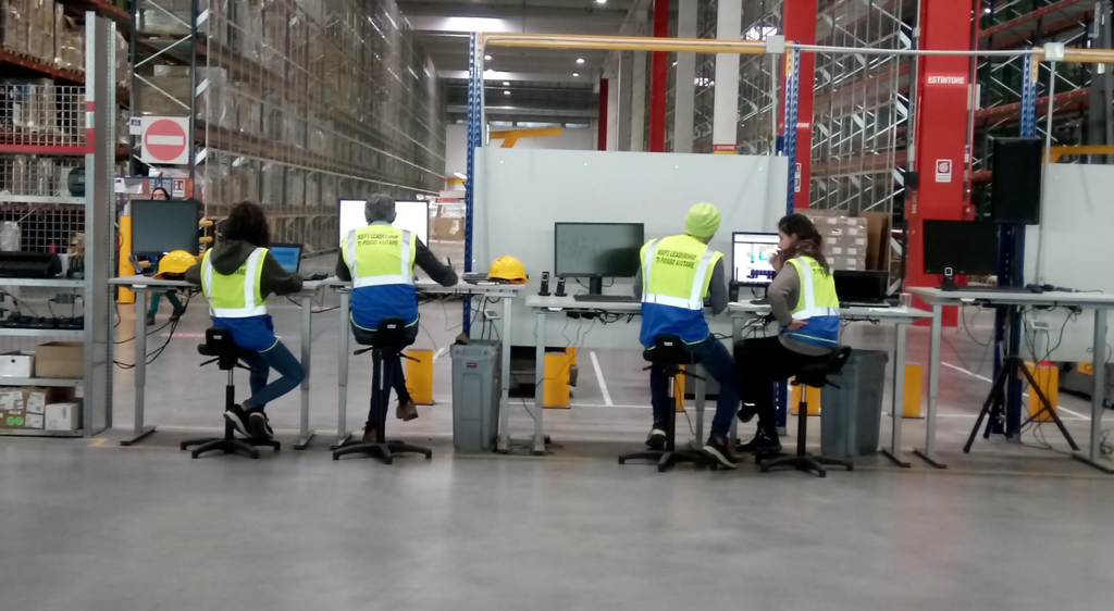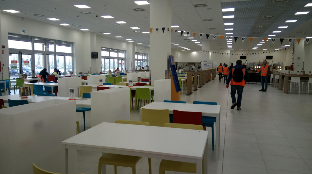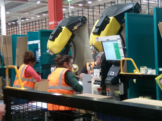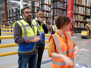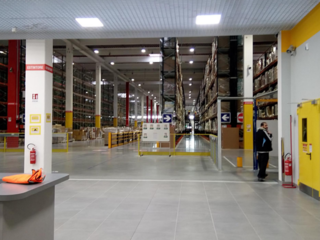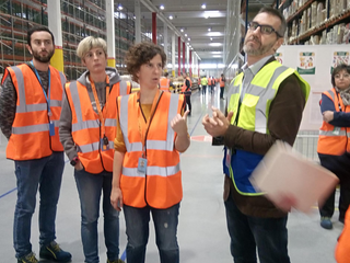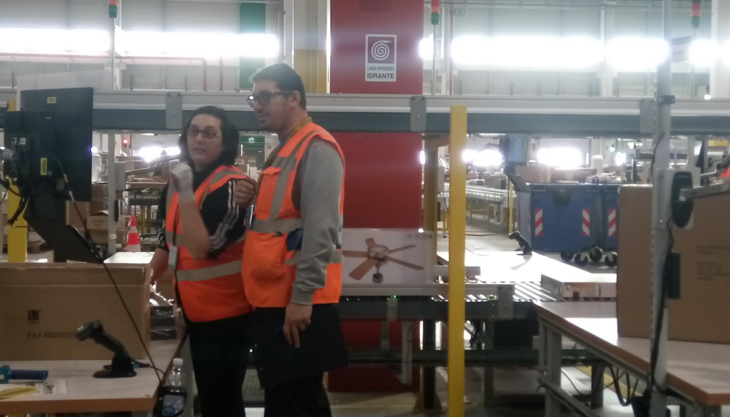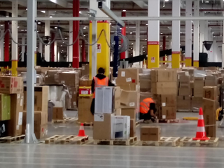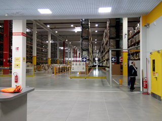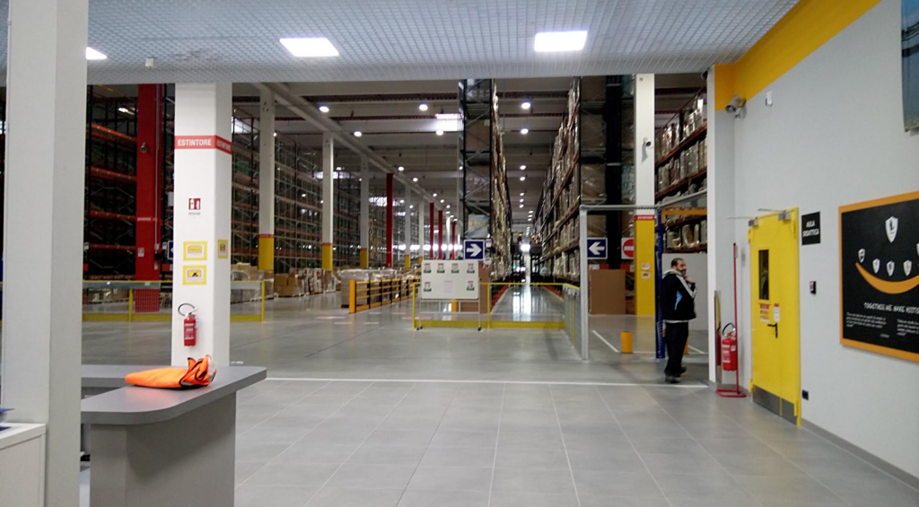 E' tutto immenso nel capannone - che un anno fa non c'era - e che è stato realizzato in nove mesi di lavoro e con un investimento di 65 milioni di euro: immensi i parcheggi, dove le auto dei dipendenti sono tutte ordinatamente disposte nella medesima direzione e dove gli stalli più comodi sono riservati al car sharing, alle bici, ai motorini e al "dipendente del mese"; gli spogliatoi con gli armadietti a combinazione numerica dove i dipendenti devono lasciare i loro effetti personali (cellulare in primis); la mensa con l'angolo ping pong e calcetto, i computer e la famosa scritta che riassume la filosofia aziendale: "Work hard, have fun, make history", ma dove ci sono anche i frigo e i forni a microonde per chi vuole portarsi il pranzo da casa; immensa è poi l'area di lavoro vera e propria, con gli oltre 400 scaffali per stoccare la merce, le decine di multetti che vanno e vengono, il settore per l'accoglienza e quello per la spedizione delle merci.