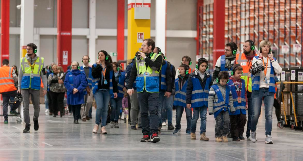 Sabato 16 dicembre, Amazon ha aperto le porte del centro di distribuzione di Vercelli alle famiglie dei dipendenti per un evento a loro dedicato all’insegna di logistica e arte. Tutti i partecipanti hanno avuto l’opportunità di scoprire le varie aree del centro e seguire da vicino il percorso che i prodotti svolgono al suo interno. Per l’occasione però Amazon ha preparato un finale a sorpresa, animando il magazzino di luci e s uoni grazie all’originale performance di video mapping musicale ideata dal sassofonista compositore Gianni Denitto e dai Visual Artist Francesco Mori, Francesco Granieri e Alessandro Arianti. Un vero e proprio show pensato per coniugare musica e immagini proiettate sulle pareti del magazzino, mixando in modo originale due universi appartenente lontani come arte e logistica.