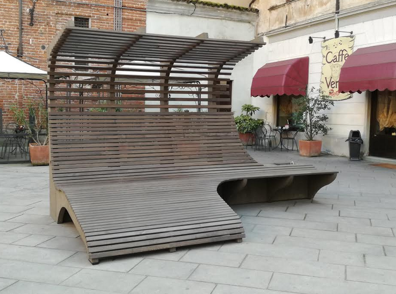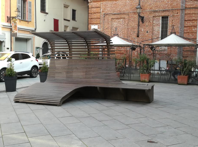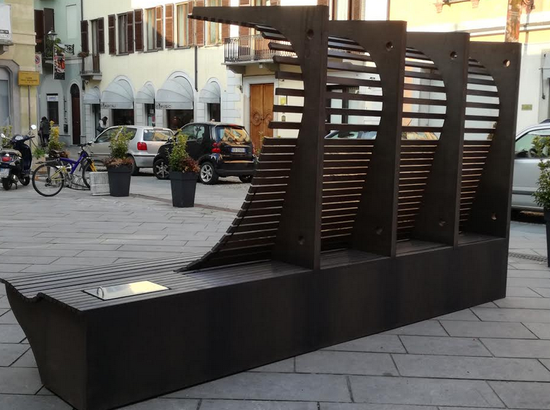 Ecco le immagini della nuova panchina in piazzetta Pugliese Levi.