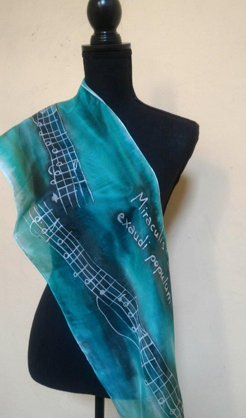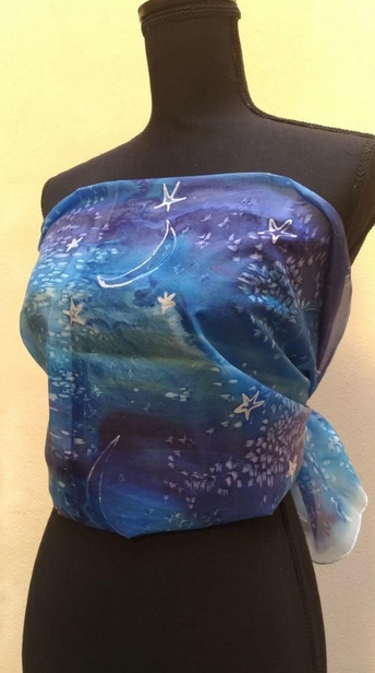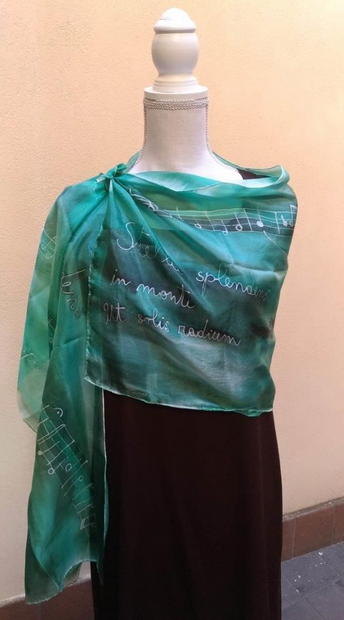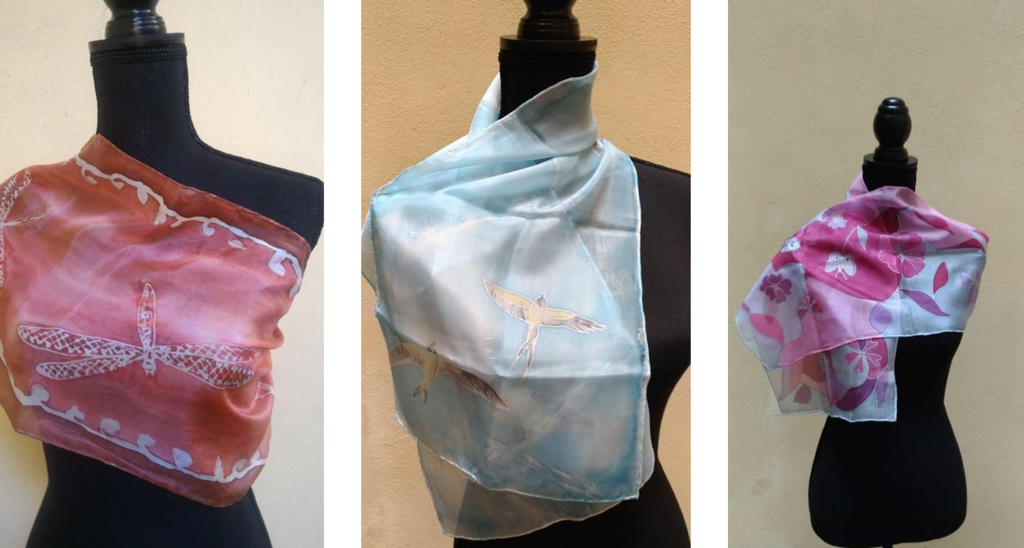 «Da sempre dipingo cotone, soprattutto le magliette. In famiglia abbiamo sempre avuto magliette dipinte da me… mia madre ne conserva ancora qualcuna di quando andavo alle scuole medie. Qualche anno fa ho cominciato ad acquistare delle sciarpe di seta bianca perché attratta da questo materiale leggero, lucido, morbido… e da quel momento è nato un nuovo amore!
