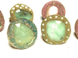 “Ti faccio vedere qualcosa”. Apre il bauletto e posa sul tavolo il vassoio colmo di anelli luccicanti. Cabochon per lo più, di piccole, medie e grandi dimensioni. La base è, per quasi tutti, tonda, quasi sferica con minuscole perline di oro e strass incastonate nella resina a fare da pavè alle pietre che stanno al centro dell’anello. E che hanno nomi impronunciabili tipo il Crisoprasio e la Prehite. Ma compaiono anche le Tormaline dai tanti colori e le Ametiste o gli Opali Rosa. C’è anche la labradorite che, per chi fosse interessato alla cristalloterapia, aumenta la creatività ed è utile contro raffreddore, stress e reumatismi.