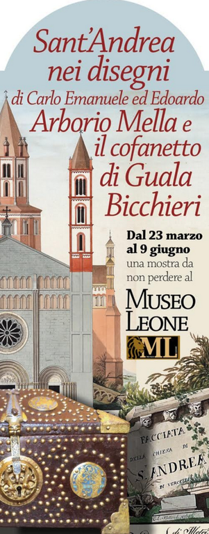 Assieme ai disegni, la mostra, mira inoltre alla valorizzazione di un’opera permanentemente esposta al Museo Leone: il cofanetto con medaglioni smaltati di manifattura limosina parte del tesoro che il cardinale Guala Bicchieri donò all’abate di Sant’Andrea Tommaso Gallo nel 1224 e che Camillo Leone acquistò poi sul mercato antiquario nel 1883. Il prezioso scrigno è l’unico oggetto appartenuto al cardinale ancora presente a Vercelli. Esso annoda la storia di Camillo Leone e del suo Museo prima a quella dell’amico Edoardo Mella, con il quale Leone condivise il comune impegno presso l’Istituto di Belle Arti, poi a quella delle vicende di Sant’Andrea e del maggiore e più famoso scrigno cardinalizio che, proprio durante i restauri dell’abbazia diretti da Carlo Emanuele, fu ritrovato ed in seguito donato al conte in segno di gratitudine per l’opera prestata.