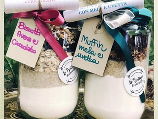 Più andiamo avanti a chiacchierare più comprendo perché abbiano aperto. La necessità di avere un luogo proprio dove ritrovarsi “Anche se dovremmo fare turni separati ci troviamo sempre a lavorare insieme. Ci sediamo qui e parliamo. Ci piace stare qui, è accogliente”. E lo è davvero. Molto ordinato, profuma di legno e di spezie. Olle e vasi sono in bella mostra sugli scaffali. All’interno farine, spezie, legumi, dolcetti e sfiziosità salate. Ci sono anche i risotti pronti “Li prepariamo noi. E’ solo una base su cui poi bisogna costruire soffritto e brodo. Che comunque vendiamo noi. Le confezioni già pronte sono per due persone, ma ci capita spesso di prepararne alcuni per molte più persone”. E tutto intorno ci sono tisane, filtri e teiere. E poi tutta la parte di abbigliamento bimbi fatto a mano e di accessori sempre handmade. Le creazioni di carta e le candele bio “Mi raccomando ricordati di dire che abbiamo anche le bomboniere, visto che è periodo”. Ma certo, dico.