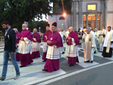 Presenti le Dame dell’Oftal seguite dai malati. A seguire i Cavalieri del Santo Sepolcro, l’Arcivescovo, le autorità cittadine (tra cui Carlo Riva Vercellotti, presidente della Provincia e Daniela Mortara, assessore comunale), le associazioni e le confraternite.