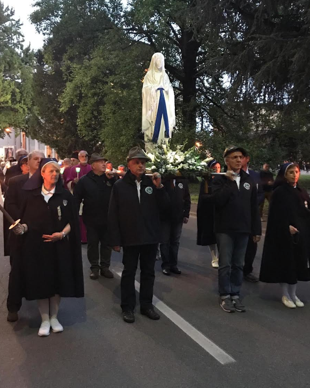 I fedeli hanno partecipato numerosi, in un clima di silenzio, di preghiera e canto. A illuminare il cammino la luce delle fiaccole, come avviene nelle processioni alla grotta di Lourdes.