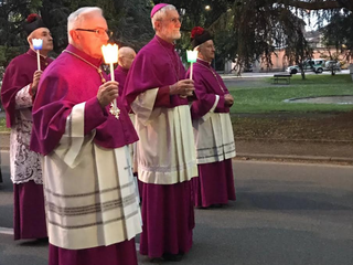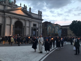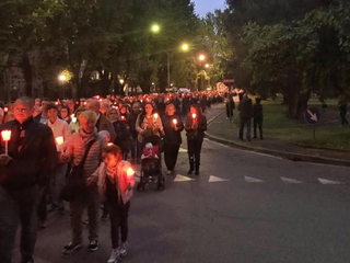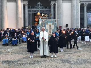 I fedeli hanno partecipato numerosi, in un clima di silenzio, di preghiera e canto. A illuminare il cammino la luce delle fiaccole, come avviene nelle processioni alla grotta di Lourdes.