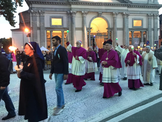 Per una sera Vercelli ha vissuto lo spirito dei pellegrinaggi a Lourdes. In occasione della presenza in città delle reliquie di Santa Bernadette, nella serata di venerdì si è celebrata la processione “aux flambeux”. Partiti dal Duomo alle 20,45 i fedeli hanno percorso Parco Kennedy costeggiando la stazione ferroviaria per rientrare in cattedrale lungo corso De Gasperi.