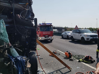 All'incidente tra mezzi pesanti, avvenuto intorno alle 15,30, ne è seguito un secondo, ancora più grave.
