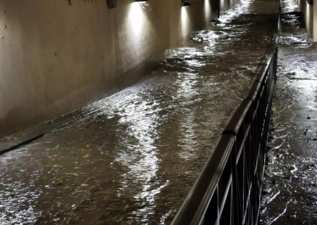 All'Isola, un tratto di via Restano, all'incrocio con via Trento è completamente allagato, così come il sottopasso dove sono presenti i Vigili del Fuoco per le operazioni di controllo in attesa del deflusso del'acqua.
