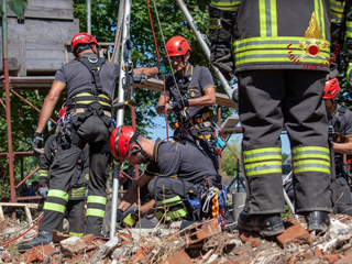 Maxi emergenza "Evento sismico 50 Piemonte 2019", martedì, a Trino. All'esercitazione hanno partecipato una squadra del distaccamento Vigili del Fuoco volontari di Trino e la squadra SAF del comando provinciale di Vercelli.