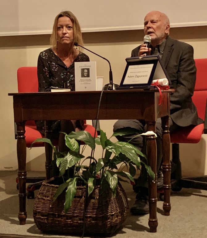 “La poesia di Adam Zagajewski è stata definita dal premio Nobel Derek Walcott una voce sommessa sullo sfondo delle immense devastazioni di un secolo osceno. La sua è una risposta ai drammi della Storia e della spersonalizzazione della società attuale, con la volontà di ribadire, come ha scritto, che noi siamo vivi, colmi di memoria e ragione. Per l’autore polacco che nelle sue opere affronta tanto la Shoah quanto l’11 Settembre, ma anche gli ex paradisi naturali fagocitati dal turismo di massa, nel segno di una tensione civile sempre alta, i poeti sono invisibili come minatori nascosti sotto terra. Ma costituiscono per noi una casa, quella della consapevolezza sociale di dover essere vigili e talvolta particolarmente orgogliosi perché in noi grida il futuro e quel balbettio ci fa umani”.