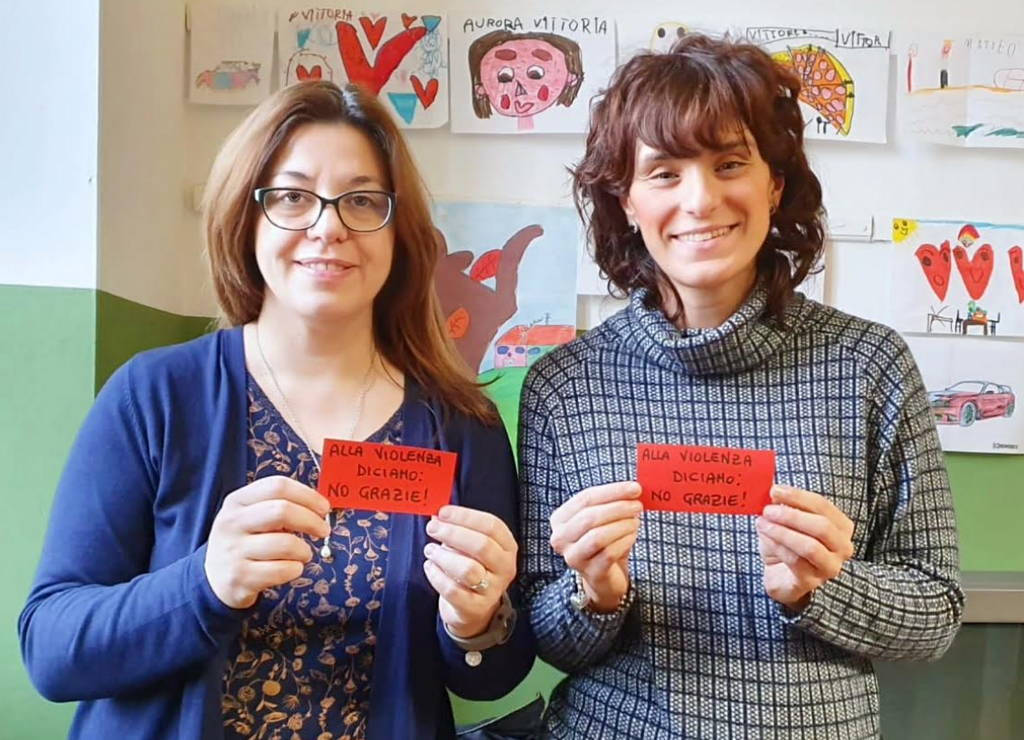 Entrambe si sono fatte fotografate con in mano un cartellino rosso, semplice simbolo per dire con un gesto immediato che i comportamenti violenti vanno “espulsi” dalla vita delle persone, condannati e contrastati. La gentilezza, simbolicamente espressa con il messaggio “No, grazie”, va invece messa in campo per prevenire e contrastare la violenza.