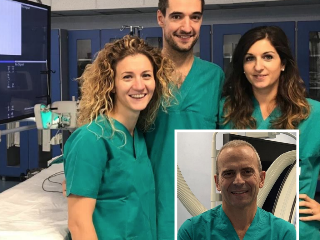 I componenti del team di Elettrofisiologia (da sin. Federica De Vecchi, Mario Matta e Chiara Devecchi) e nel riquadro il primario Francesco Rametta