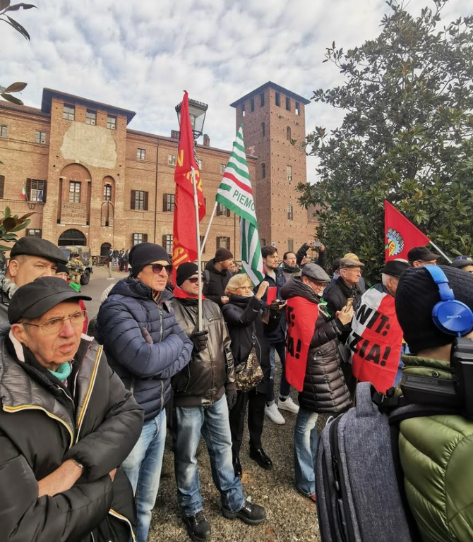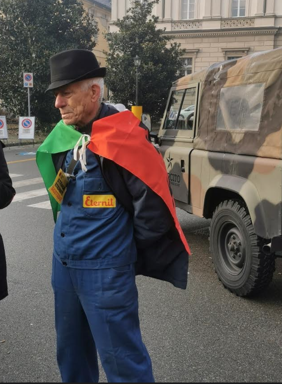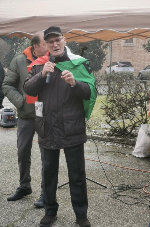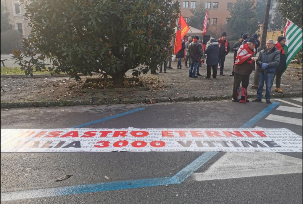 A sfidare il freddo e la nebbia vercellese anche Pietro Condello, ultrasettantenne ex operaio alla fabbrica del Ronzone. Sopra la sua tuta da lavoro porta il tricolore con la scritta “Eternit giustizia”, una bandiera diventata il simbolo della lunga battaglia legale. Con l'amianto ha lavorato per 25 anni, fino alla chiusura della fabbrica. “Eravamo in 50 nel mio reparto – ricorda l'uomo – oggi sono rimasto solo io”.