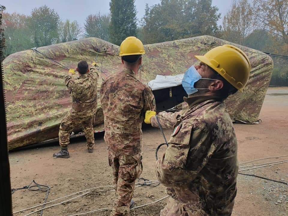 Sono stati ultimati nella mattina di sabato i lavori per l’installazione delle tende dell'esercito che saranno utile per migliorare la gestione dei pazienti dell'ospedale di Vercelli e che potranno ospitare fino a un massimo di 20 persone.