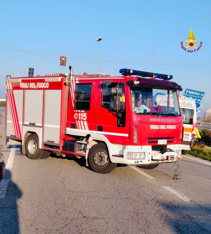 Per cause al vaglio di Polizia locale e Carabinieri, due vetture si sono scontrate, e una è anche finita incastrata sul ciglio della carreggiata. Per i soccorsi sono intervenute due squadre dei Vigili del Fuoco, una proveniente dal distaccamento di Livorno Ferraris e una del distaccamento volontari di Santhià: all'arrivo sul posto uno dei conducenti, una donna, era bloccata all'interno dell'autovettura incidentata, per cui le prime operazioni sono state finalizzate all'estrazione dell'automobilista, poi affidata alle cure del 118.