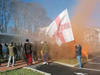 Un'ora di attesa e slogan, poi il saluto alla Pro Vercelli in partenza verso Novara
