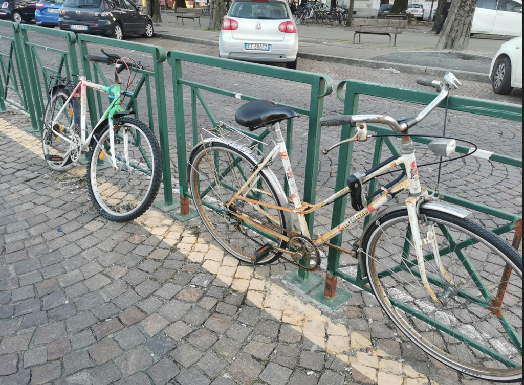 «Metteremo ulteriori portabici e poi poi faremo rimuovere i mezzi che sono assicurati in modo improprio a agli elementi dell'arredo urbano», spiega l'assessore Emanuele Pozzolo. Tra questi almeno 4 o 5 due ruote che, pur essendo regolarmente incatenate alla balaustra, sono prive di sella, dunque sicuramente inutilizzabili.