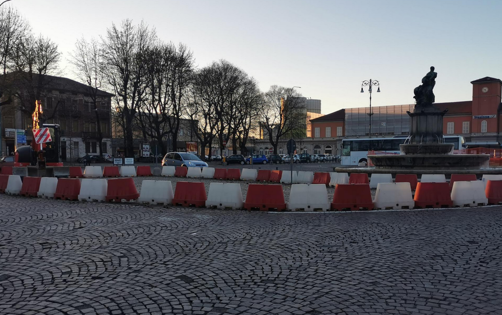 Spariranno i "funghetti", ormai malconci e in parte arrugginiti che avevano caratterizzato la piazza negli ultimi anni e al loro posto, intorno alla fontana e nella parte verso viale Garibaldi, saranno create delle aiuole a completamento di quelle che accolgono i visitatori all'uscita dalla stazione.