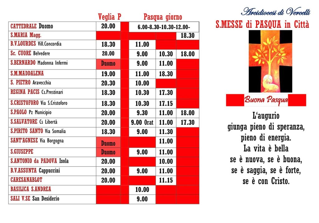 Per le altre funzioni delle parrocchie cittadine, invece, ecco gli orari delle veglie del sabato santo e delle messe di Pasqua (PER INGRANDIRE CLICCARE SULLA FOTO SOTTO).