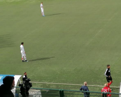 13': Bei fraseggi della Pro a centrocampo, Rolando e Zerbin sono in palla, l'arbitro ha puntato Comi.
