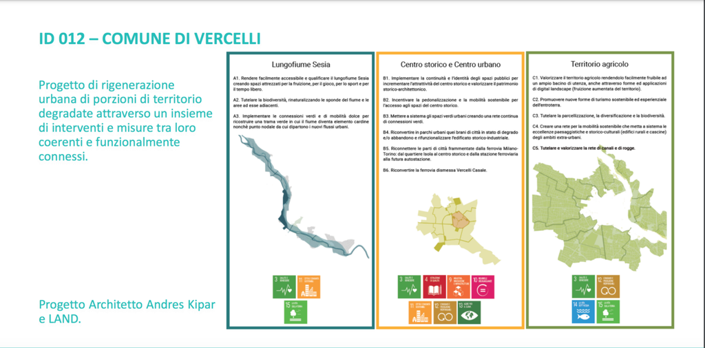 Due sono i progetti preparati dagli uffici comunali per la riqualificazione del rione Isola e dell'area del centro storico tra via Dante e via Galileo Ferraris. Il terzo è il progetto di rigenerazione urbana relativo al parco del Lungosesia, alla valorizzazione del territorio rurale e al cosiddetto “Piano Kipar” per la trasformazione green della città attraverso la creazione di nuove aree verdi, la riqualificazione dei viali, la valorizzazione dei percorsi ciclabili e pedonali.