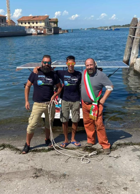 Simone Ippolito ce l'ha fatta. Poco dopo le 14,30 il tronzanese è arrivato a Chioggia completando entro i termini che si era prefissato la traversata Valenza - Venezia, compiuta a bordo di un natante di sua costruzione, alimentato a energia solare.