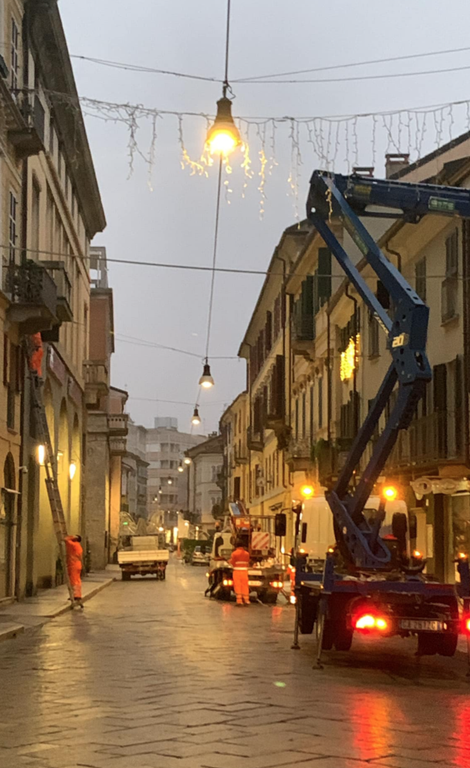 Sabato pomeriggio, dalle 18, è in programma la cerimonia di accensione delle luci in tutta la città: l'appuntamento è in piazza Cavour ma, come l'anno scorso, potrà anche essere seguito in diretta streaming sui canali social del Comune.