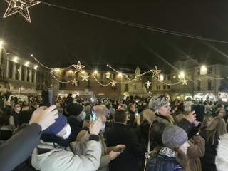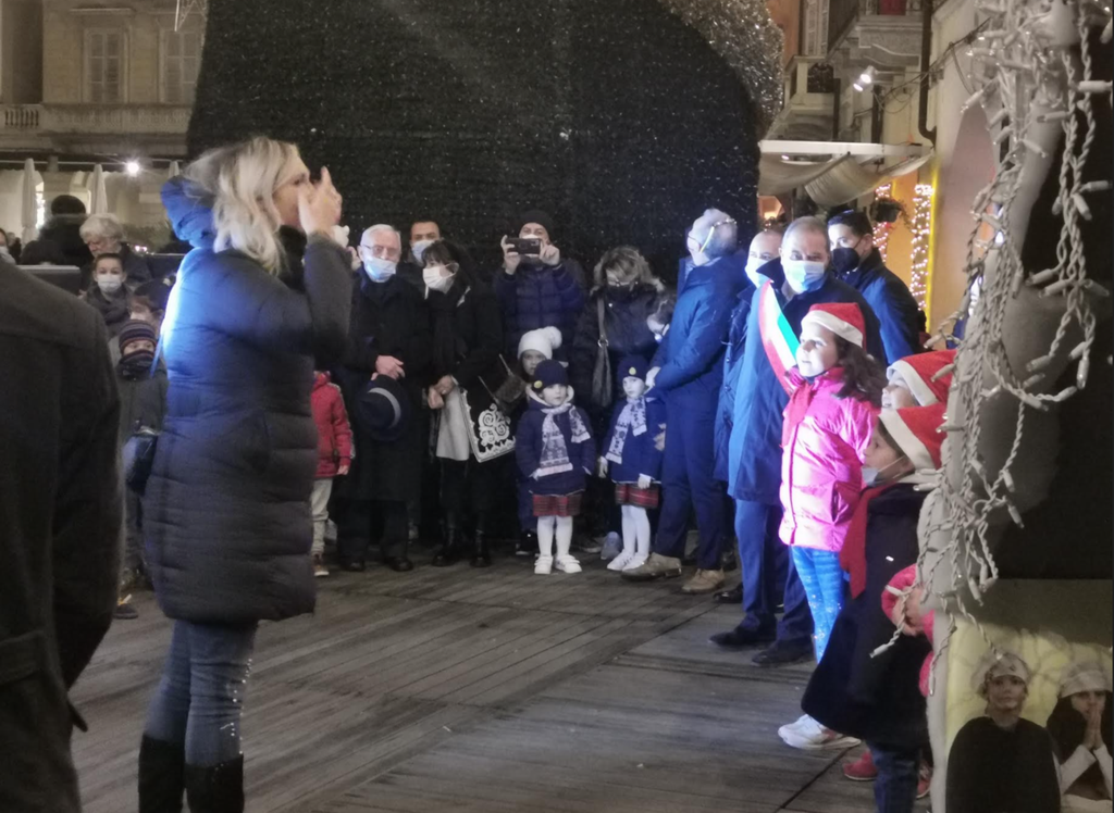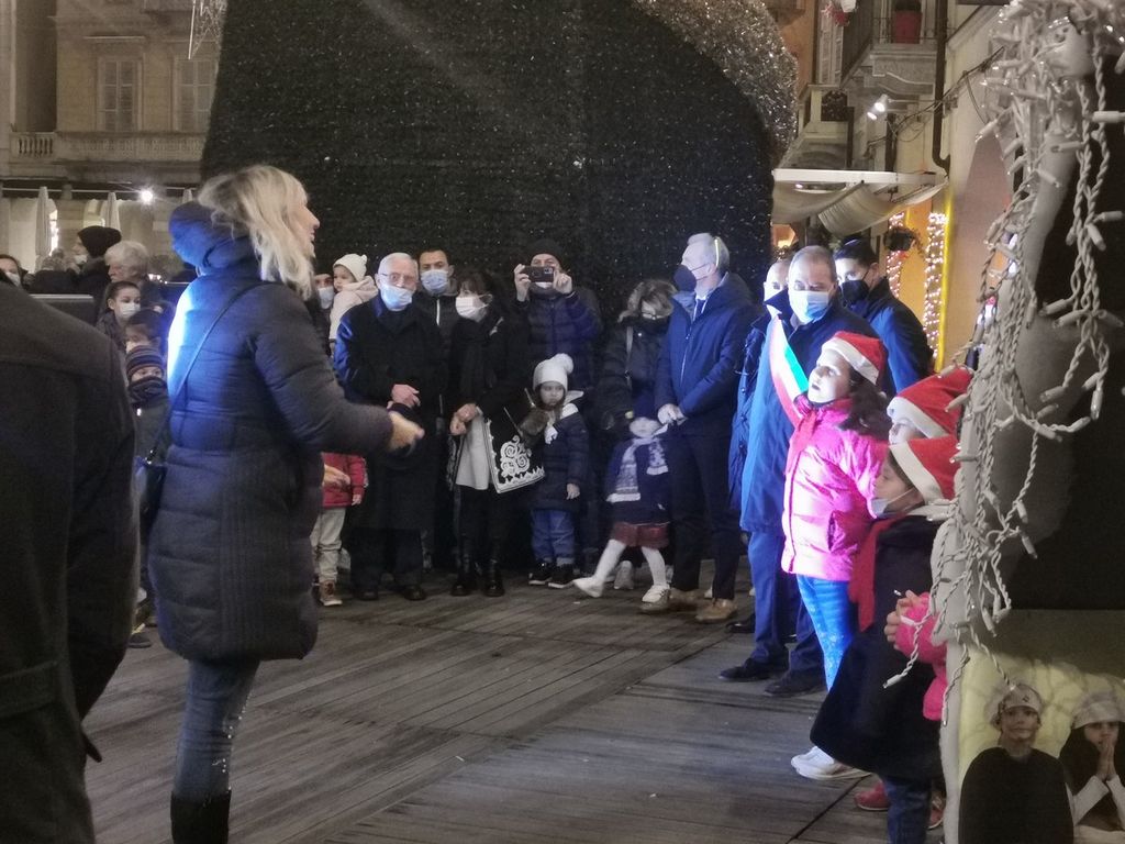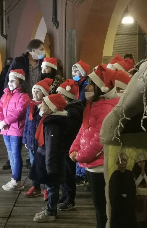 Proprio i bambini delle Scuole Cristiane, con i loro canti, hanno accompagnato il pomeriggio. Per il secondo anno, sono costretti a trasformare in virtuale il tradizionale presepe vivente che in passato aveva accompagnato l'Avvento dei vercellesi. Così, sullo schermo installato nella capanna già allestita in piazza Cavour, verranno trasmessi i video-auguri inviati da tutti i bambini delle scuole della città.