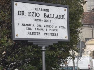 Vercelli rende omaggio alla memoria di Ezio Ballarè intitolando all'indimenticato “dottore in lambretta” in giardini di piazza D'Angennes. Un luogo simbolico, posto a pochi metri da quello che è stato lo studio medico in cui un numero spropositato di assistiti riceveva diagnosi e terapie ma soprattutto consigli, parole di conforto, battute scherzose.